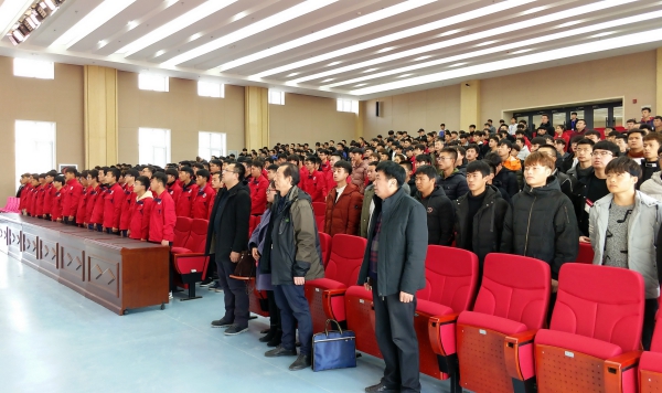 授牌仪式后,吉利订单班学生集体宣誓,将严格按照定单班的要求努力学习,为2025中国制造贡献自己的力量!吉利班学生代表郭永强代表全体同学感谢吉利集团所提供的良好机会。同学们也将心怀感恩、坚守诚信,以实际行动来回报企业,回报母校。